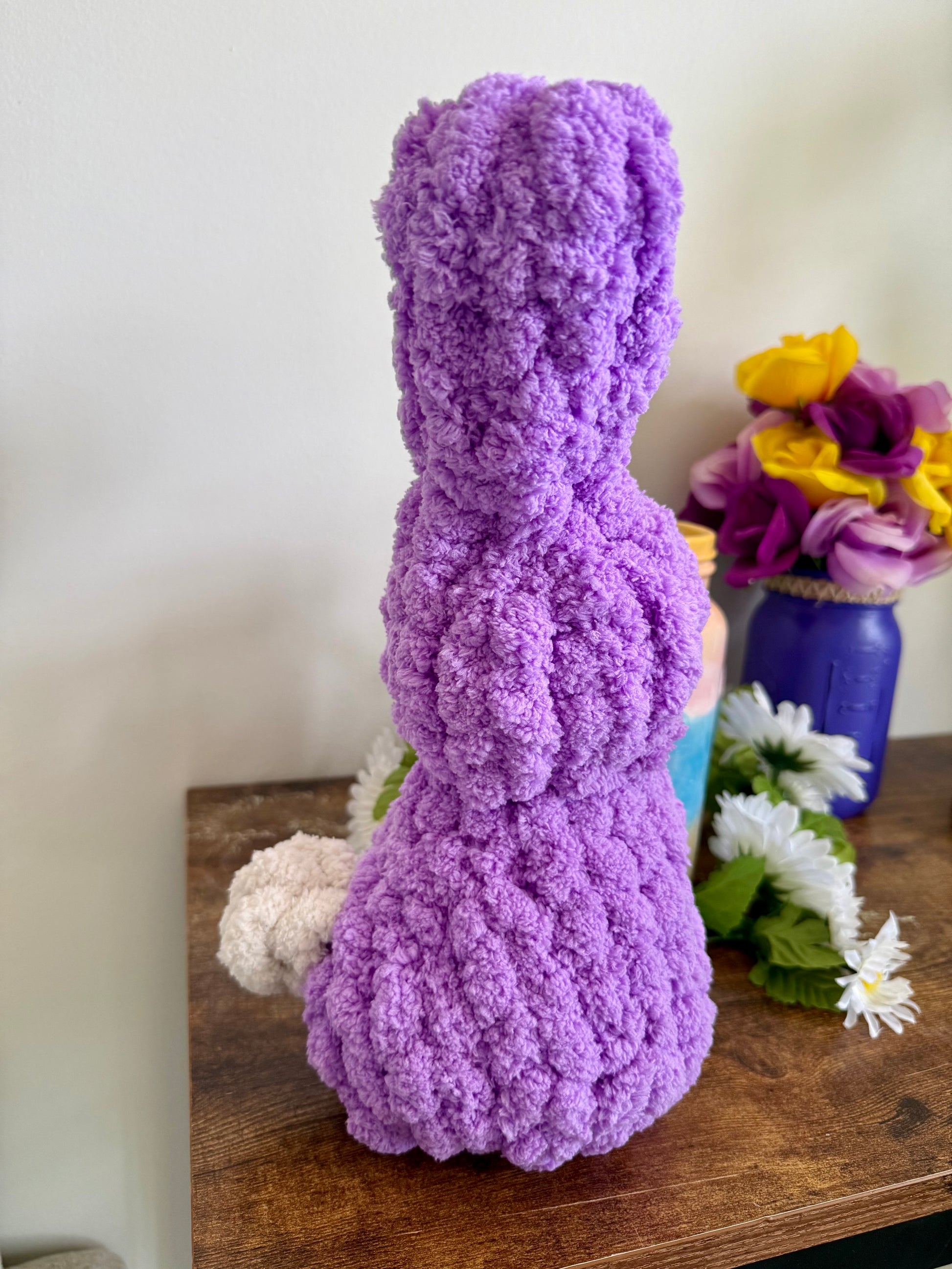 This 13ā€ Hand Knit Spring Bunny is lovingly handmade using ultra-plush chunky chenille yarn for that cozy, cloud-like texture everyone adores. Each bunny is carefully stitched by hand, making every piece slightly unique and truly one-of-a-kind.