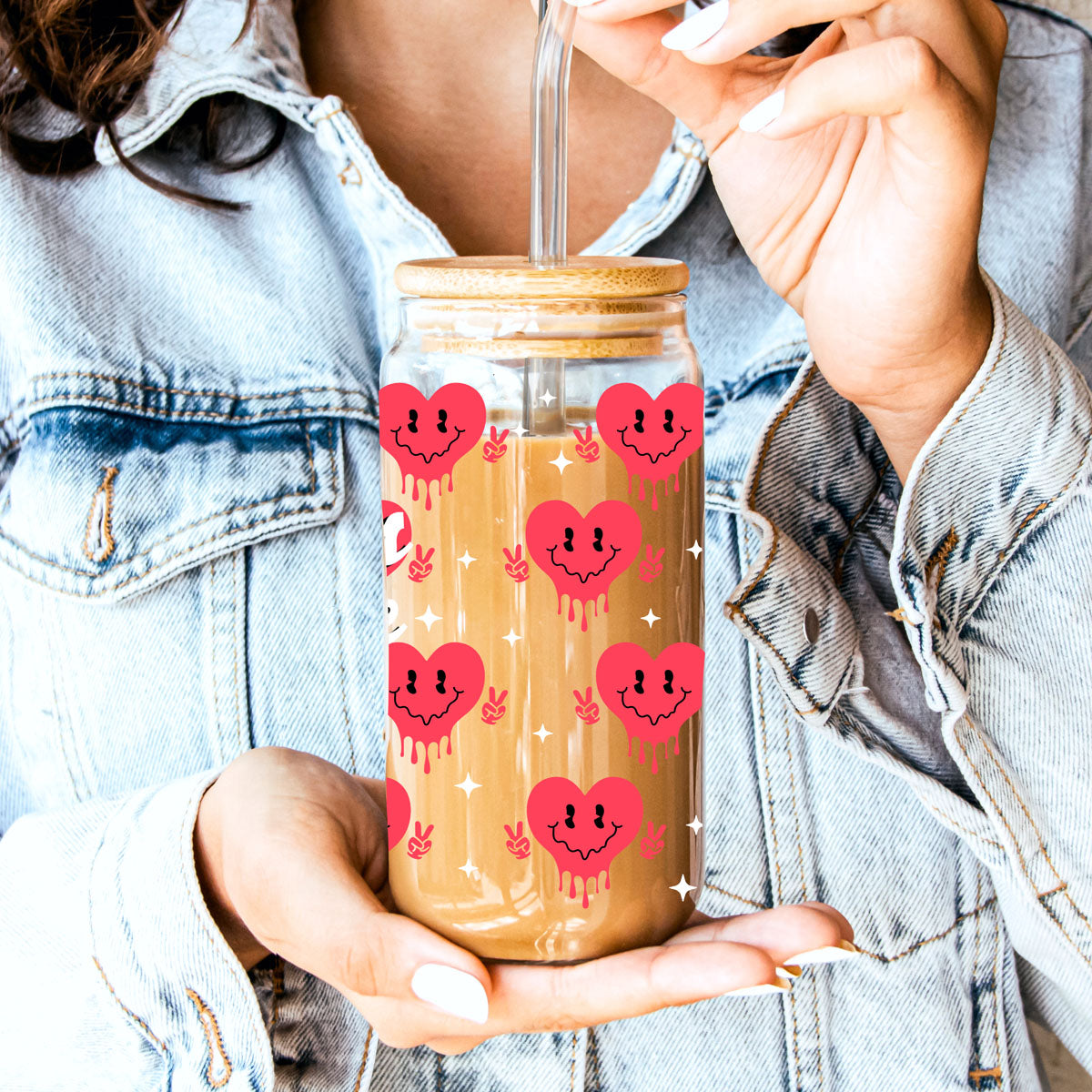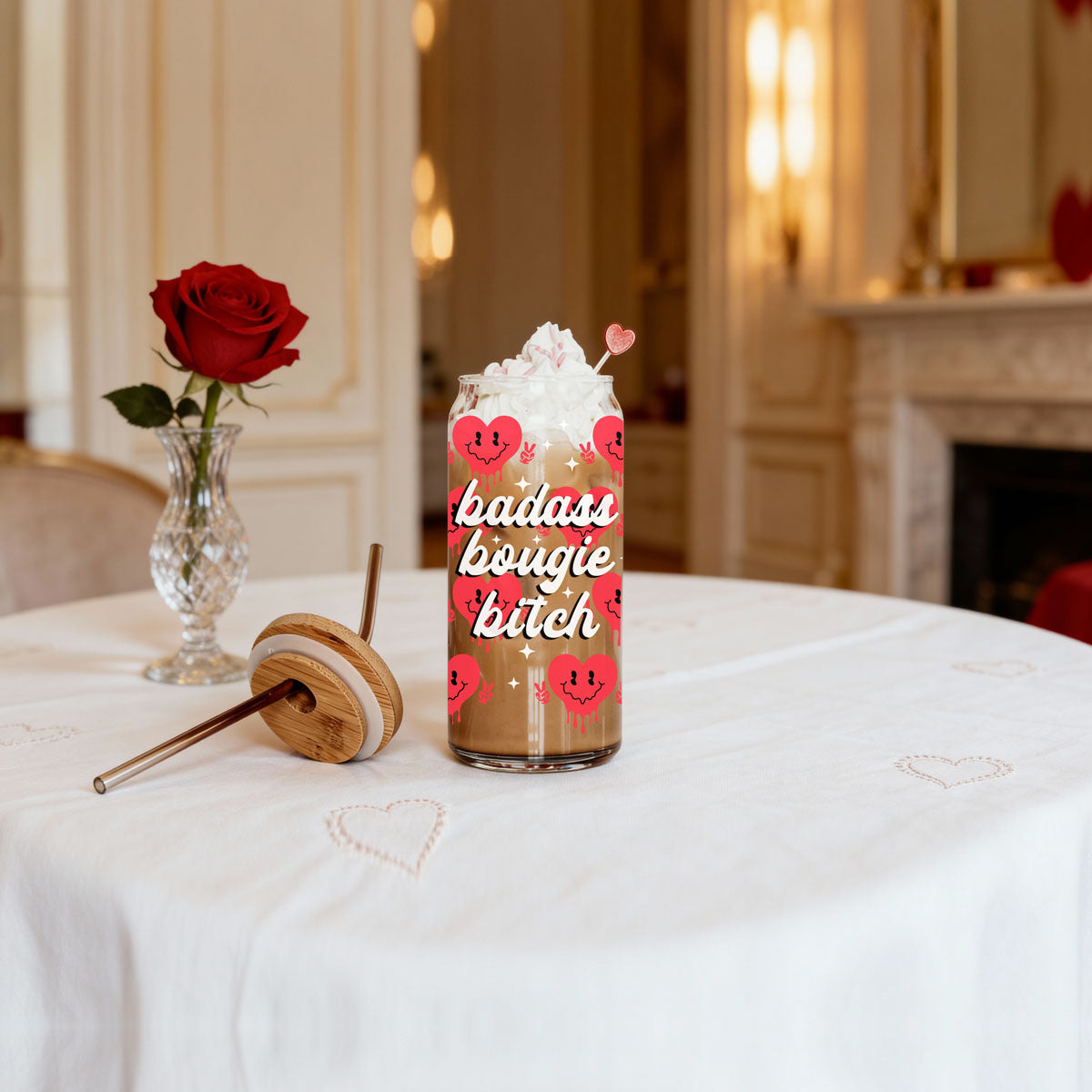 Unleash your inner diva with this fabulous 20oz glass cup that screams confidence! Featuring the bold phrase “Badass Bougie Bitch,” surrounded by melting smiley face hearts throwing up peace signs, this cup is the perfect blend of fierce and fun.