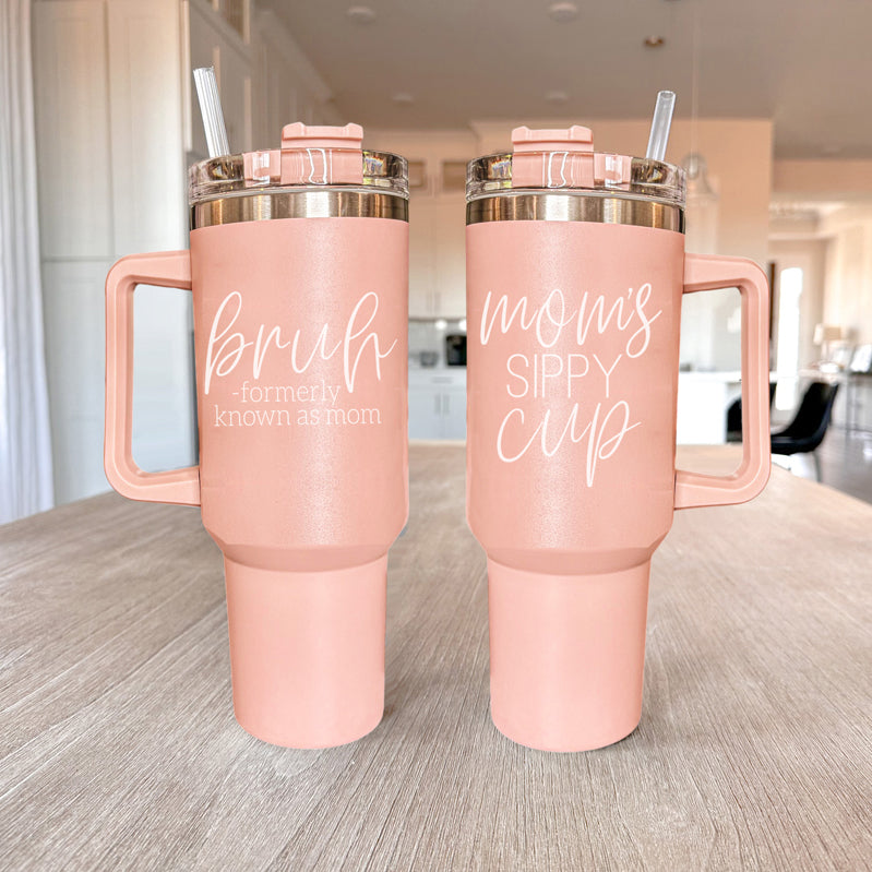 Introducing the "Bruh Formerly Known as Mom" 40oz tumbler in a pink style– because sometimes being a mom feels a lot like being a 'bruh' who's seen it all! Or more because that's the word that comes out of your kids mouth daily.
