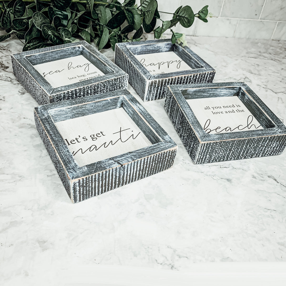 - Distressed gray frame (weathered like your favorite beach memories)Â