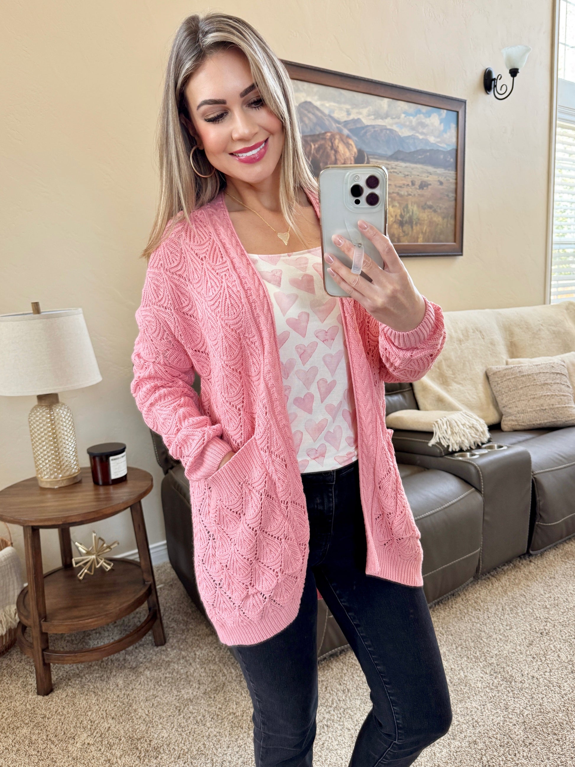 IN STOCK Open Knit Cardigan - Rose