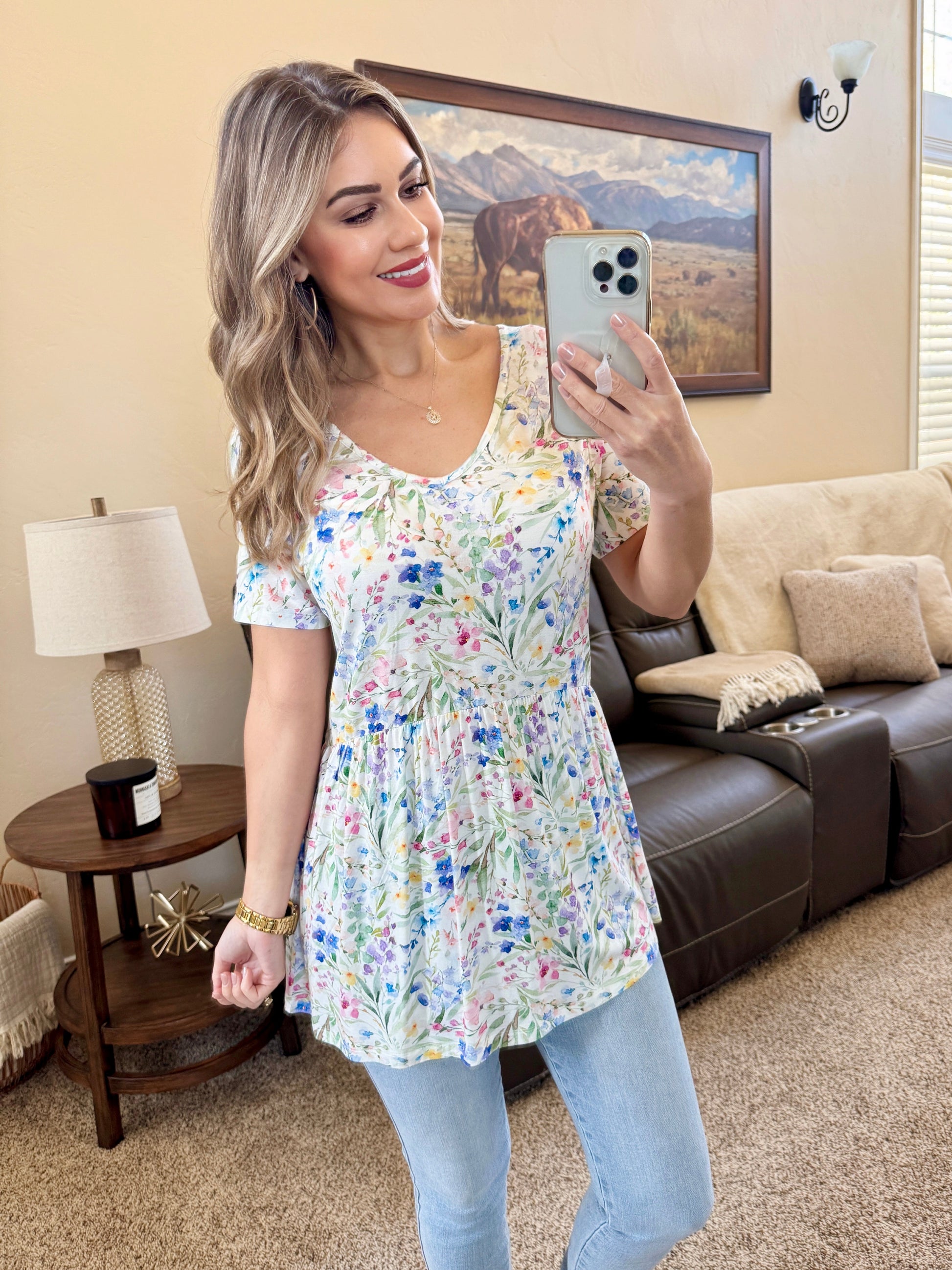 IN STOCK Sarah Ruffle Short Sleeve - Cottage Floral