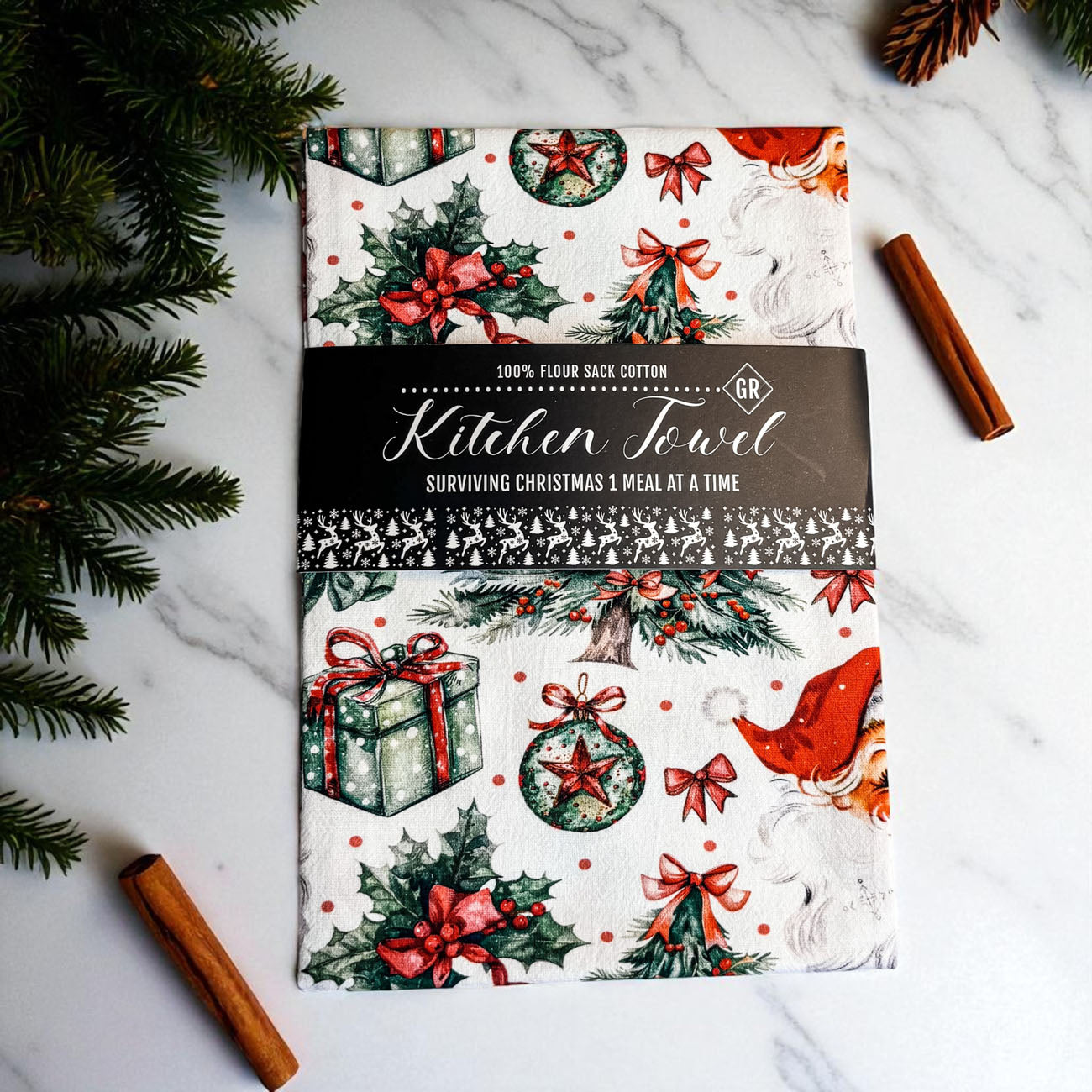Vintage Santa Christmas Kitchen Towel - It's Like Christmas Morning Exploded in Your Kitchen! 🎅🎁🎄
